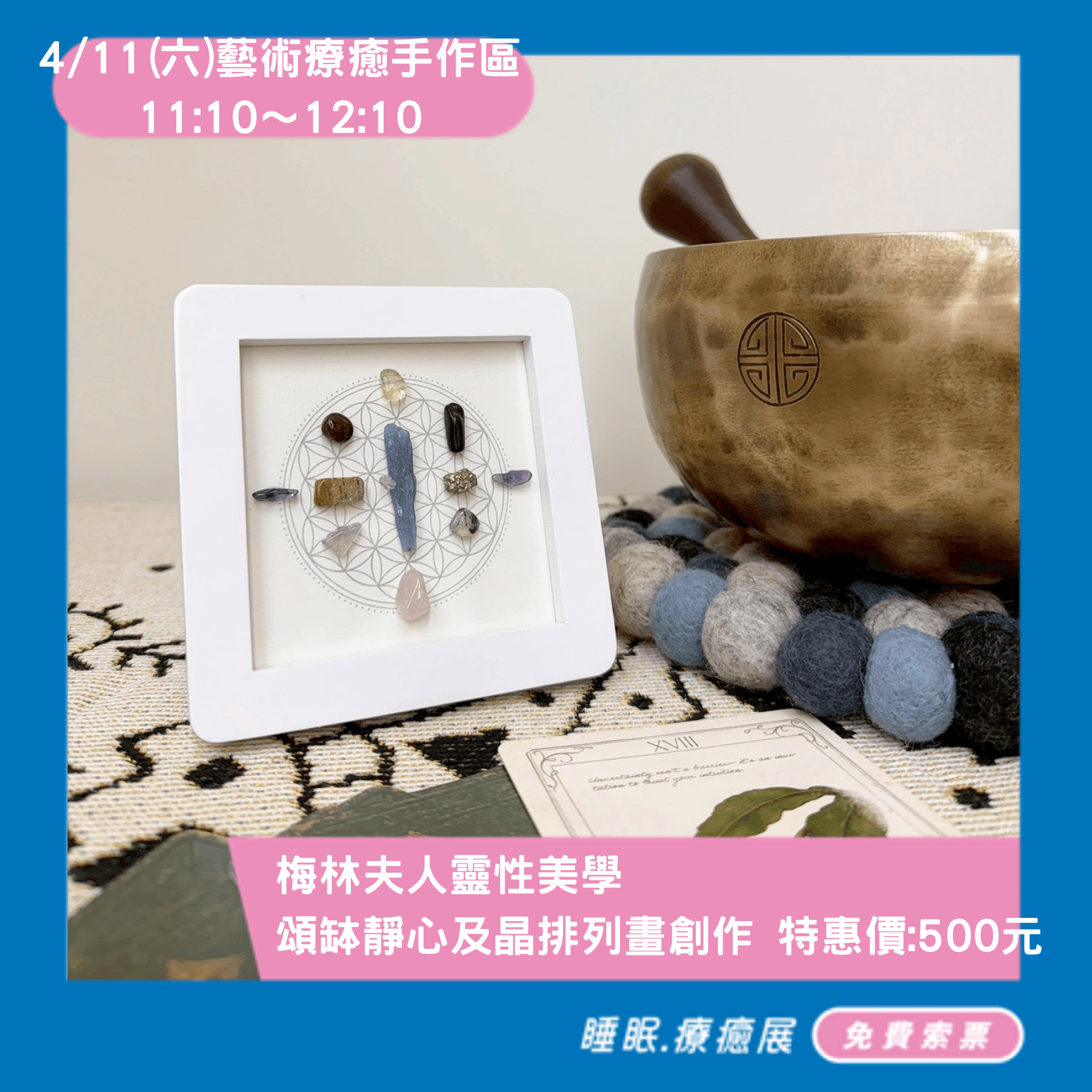 這不是一場普通的展覽,而是一場感官的覺醒。視覺、觸覺、聽覺、嗅覺,在這裡都將被藝術喚醒。試著用手感受陶土的溫度,閉上眼傾聽頌缽的共鳴,或是透過色彩心理學的體驗來重新認識自己。「藝術療癒特區」,等你來體驗這場身心靈的奇蹟。